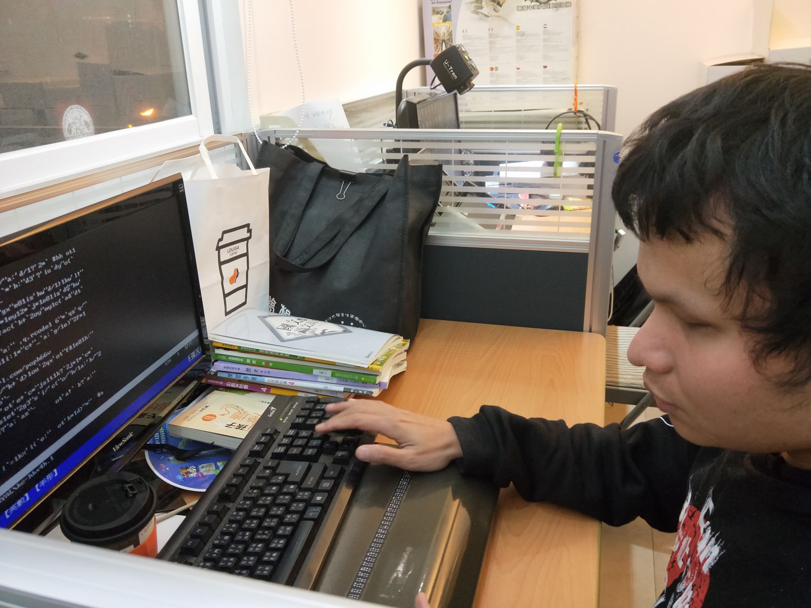 在這之前,他主要工作是點字書校對(包括教科書和課外書);若同事忙不過來,也支援盲用電腦和手機教學。工作之餘他參加台中瞽者同心國樂團,一個月練習一次,表演機會少。